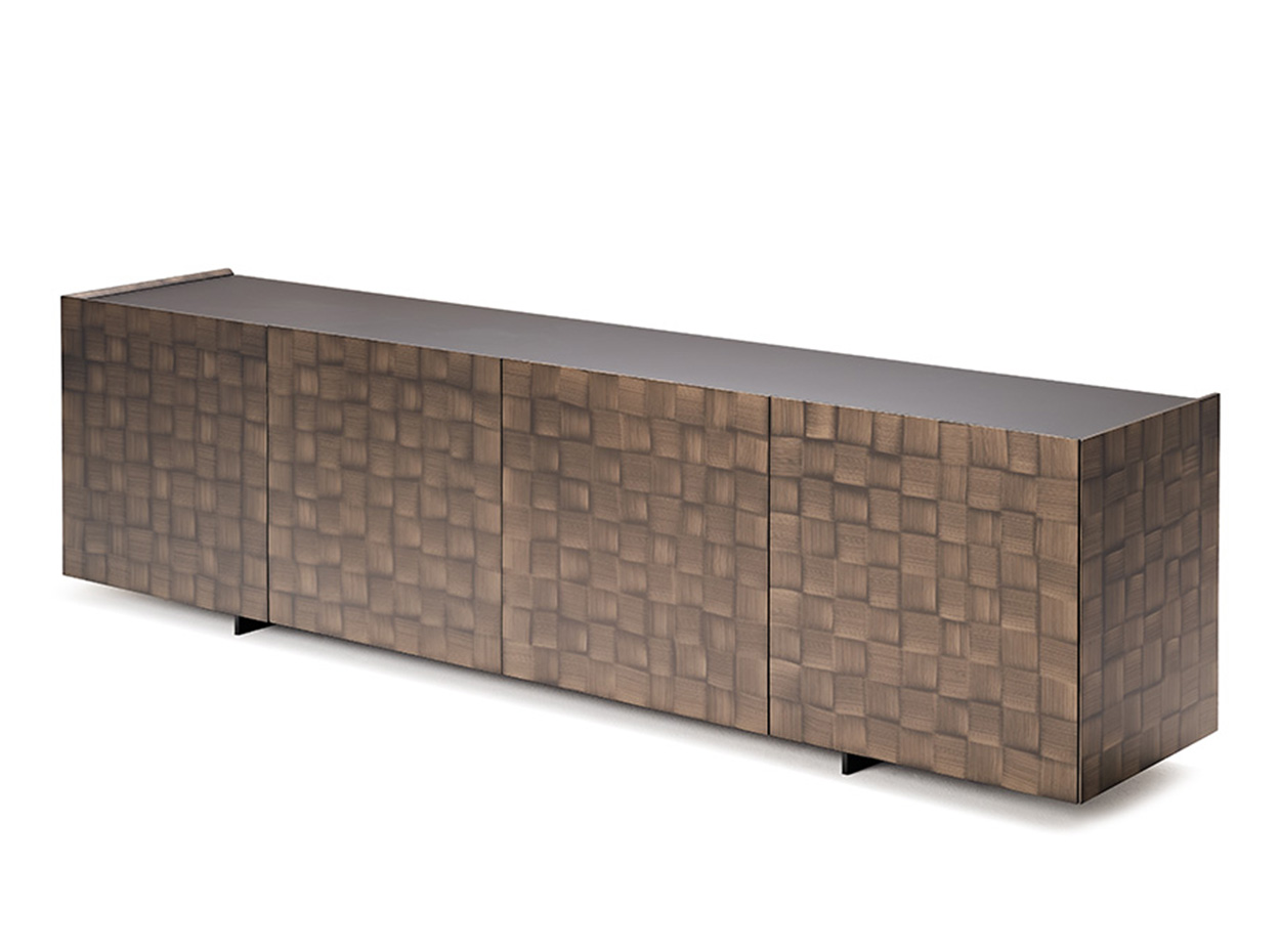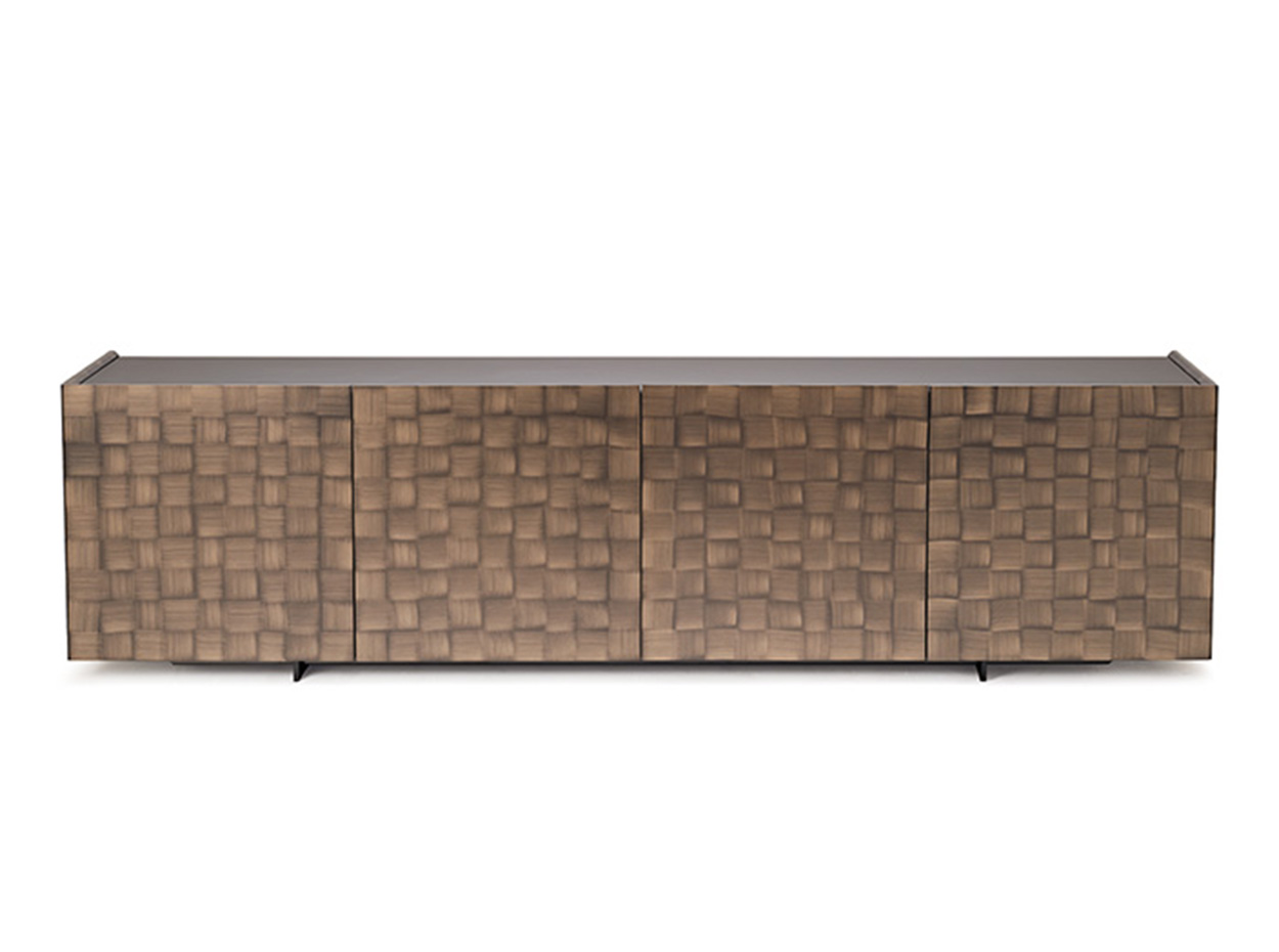 Modern Italian Sideboard Arizona Crossing by Cattelan Italia. Two different elements characterize the design ideology behind Arizona. The first is a clear and geometric shape that provides a balanced design while giving a sense of sophisticated style. Secondly, it is the metal Brushed Bronze or Brushed Grey finish weft and warp pattern that resembles a weave on the fabric, giving greater three-dimensionality. Combined, Arizona Crossing is more than a sideboard: it is a vision that understands what it means to create personality through design and carefully selected materials while playing with the image and connecting emotional points.