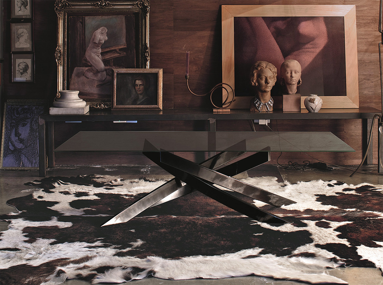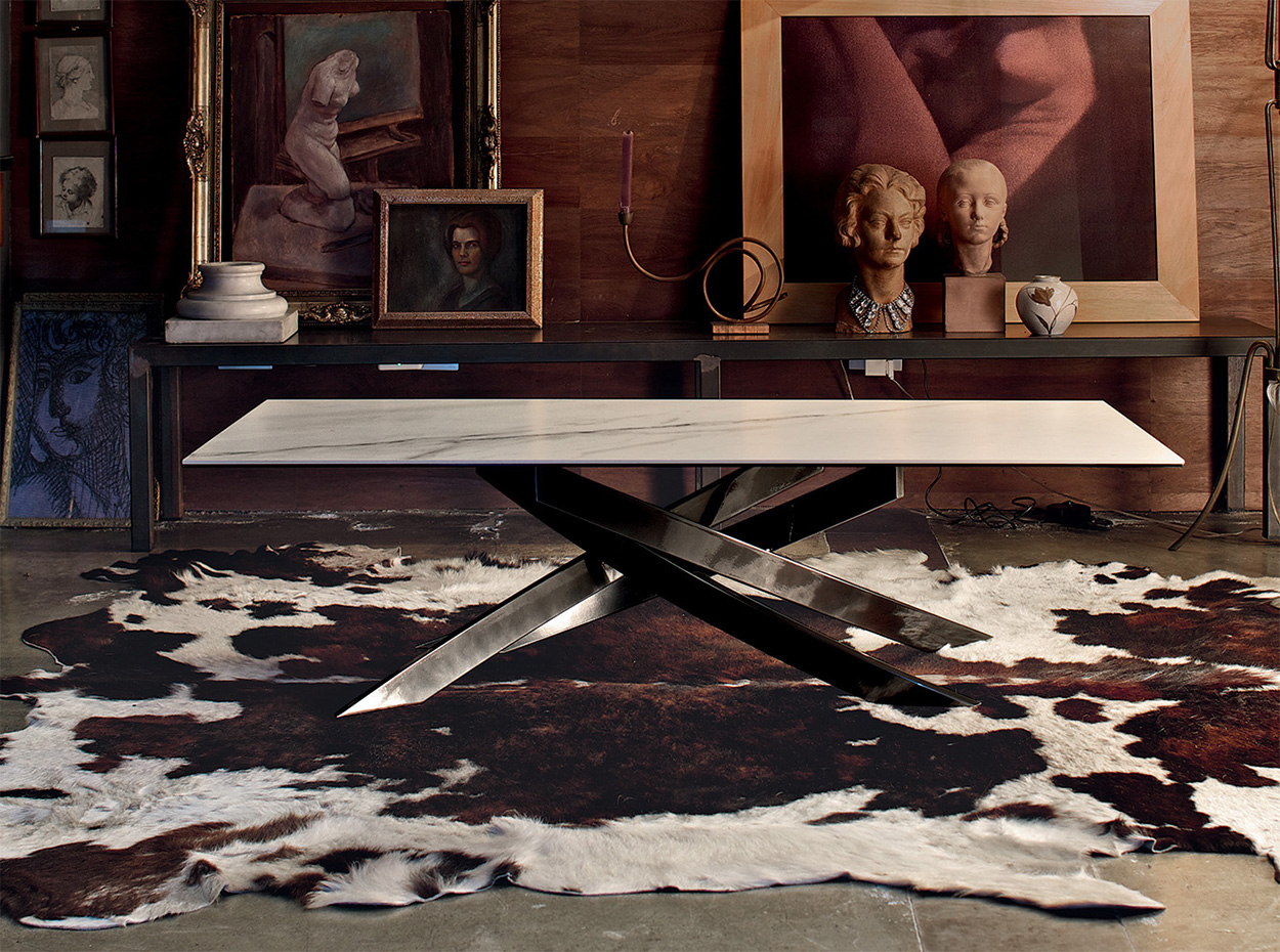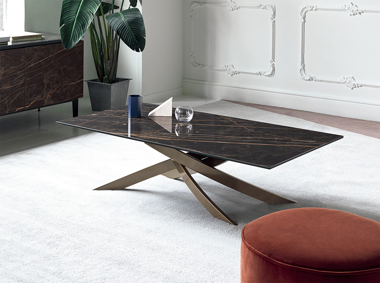 The Artistico Coffee Table by Bontempi Casa showcases bold, architectural design in a compact and elegant form. Its signature crisscrossed metal base brings sculptural character to any living room, while the low profile makes it ideal for pairing with modern sofas and sectionals.