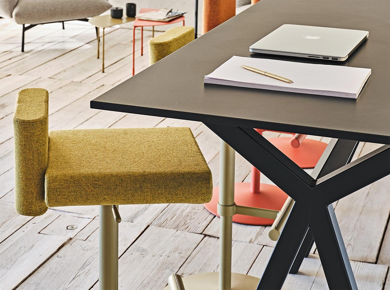 Bold and modern, the Dama Bar Table by Midj brings an industrial flair to any contemporary kitchen or bar area. The unique X-shaped legs, connected by a horizontal support bar, create a strong, sculptural base that ensures both durability and style. Its elevated height makes it ideal for casual dining, entertaining, or enjoying drinks with friends.