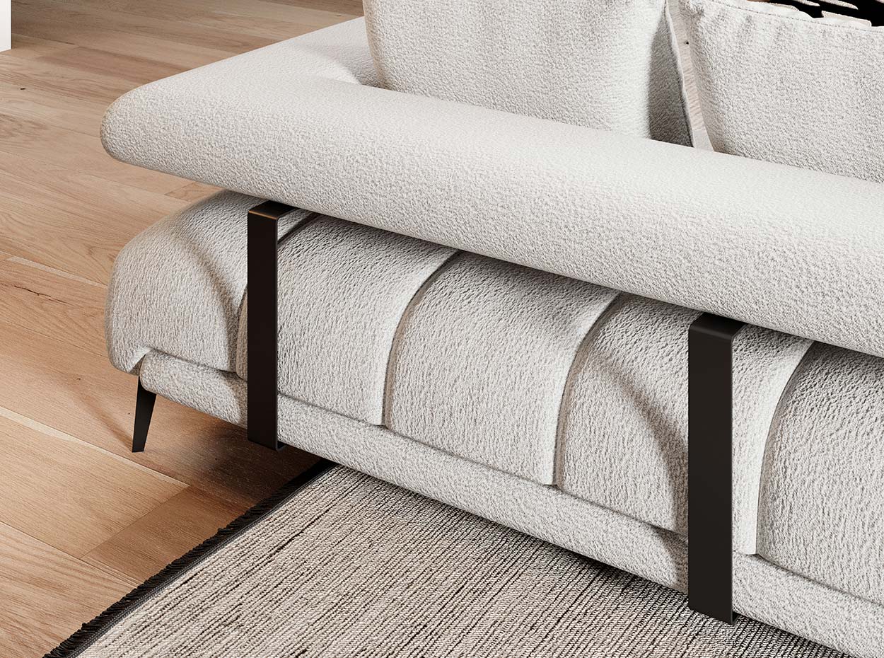 High metal legs lend an airy elegance, enhancing the sofa’s sleek design, while delicate stitching and subtle drawstrings on the seat add a refined touch. With its contemporary aesthetic and innovative features, the Magnetic L Sectional Sofa offers both versatility and luxurious relaxation for any modern living space.