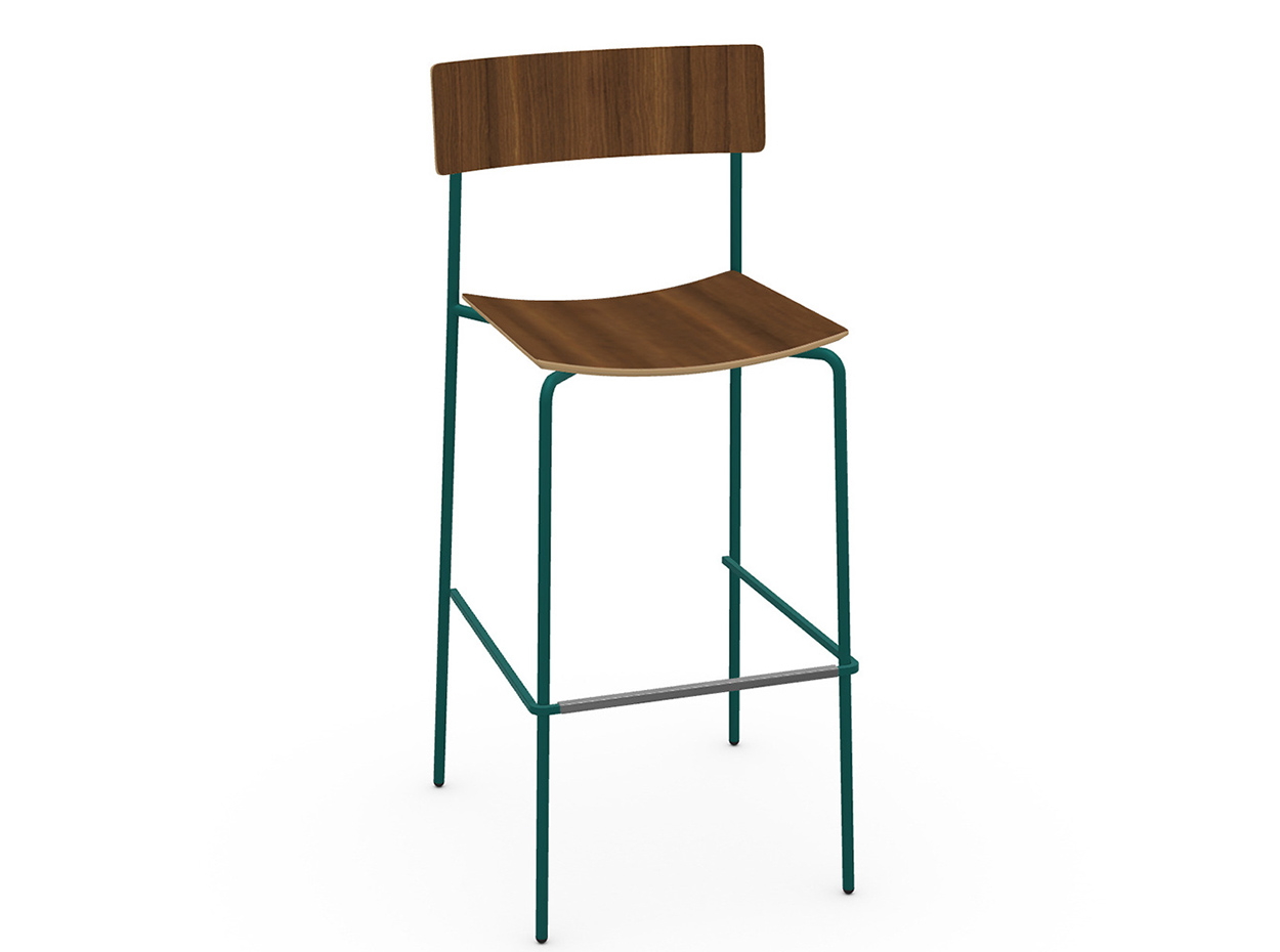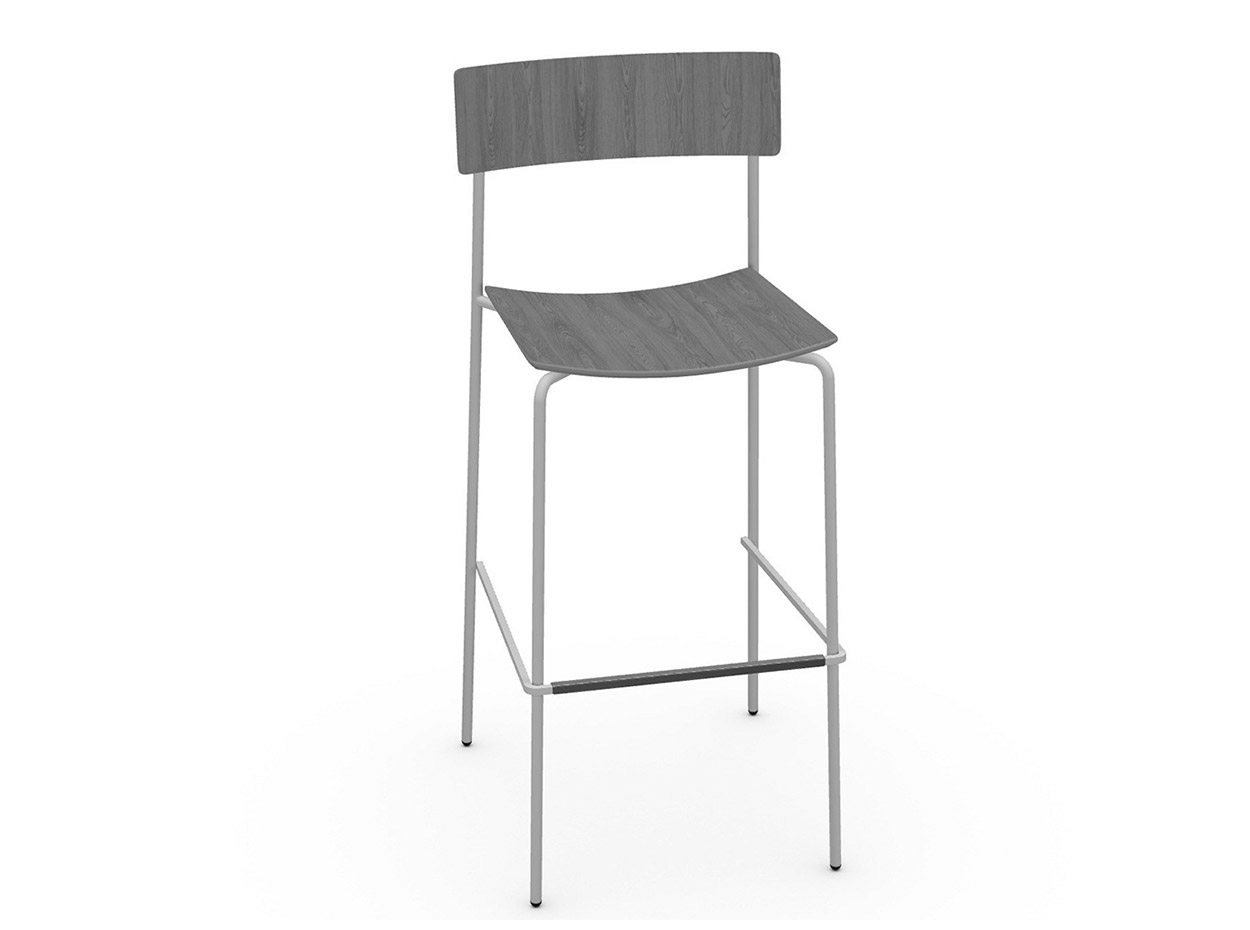 The seat and backrest, designed for ergonomic comfort, are available in a selection of premium upholstery finishes including fabric, leather, and eco-leather. The stool’s curved backrest provides gentle support, while the integrated footrest adds to the overall functionality and ease of use.