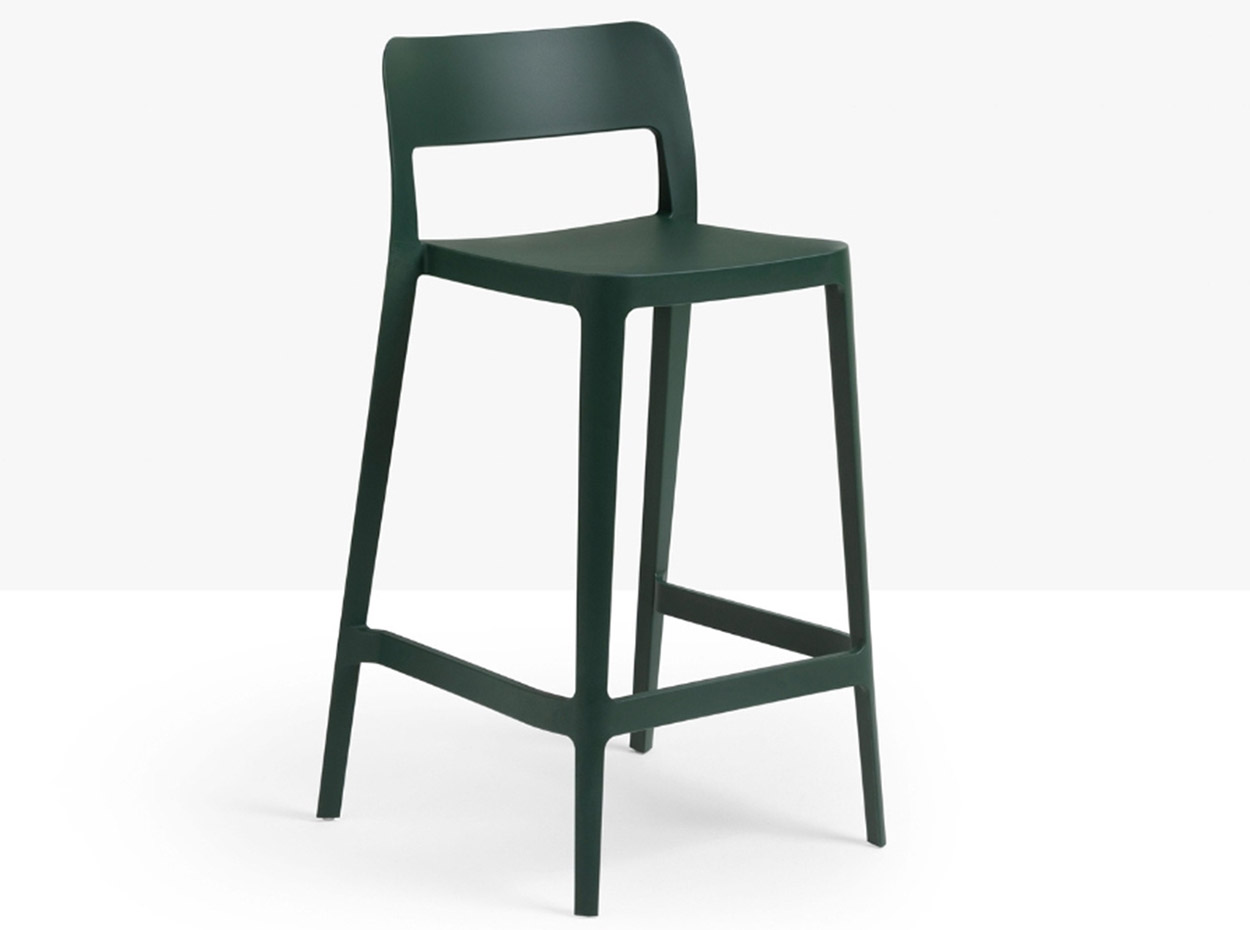 Its lightweight polypropylene structure ensures durability and ease of movement, while integrated footrests offer added comfort. Available in two heights, the Nene Bar Stool adapts effortlessly to kitchen counters, high tables, or bar areas.