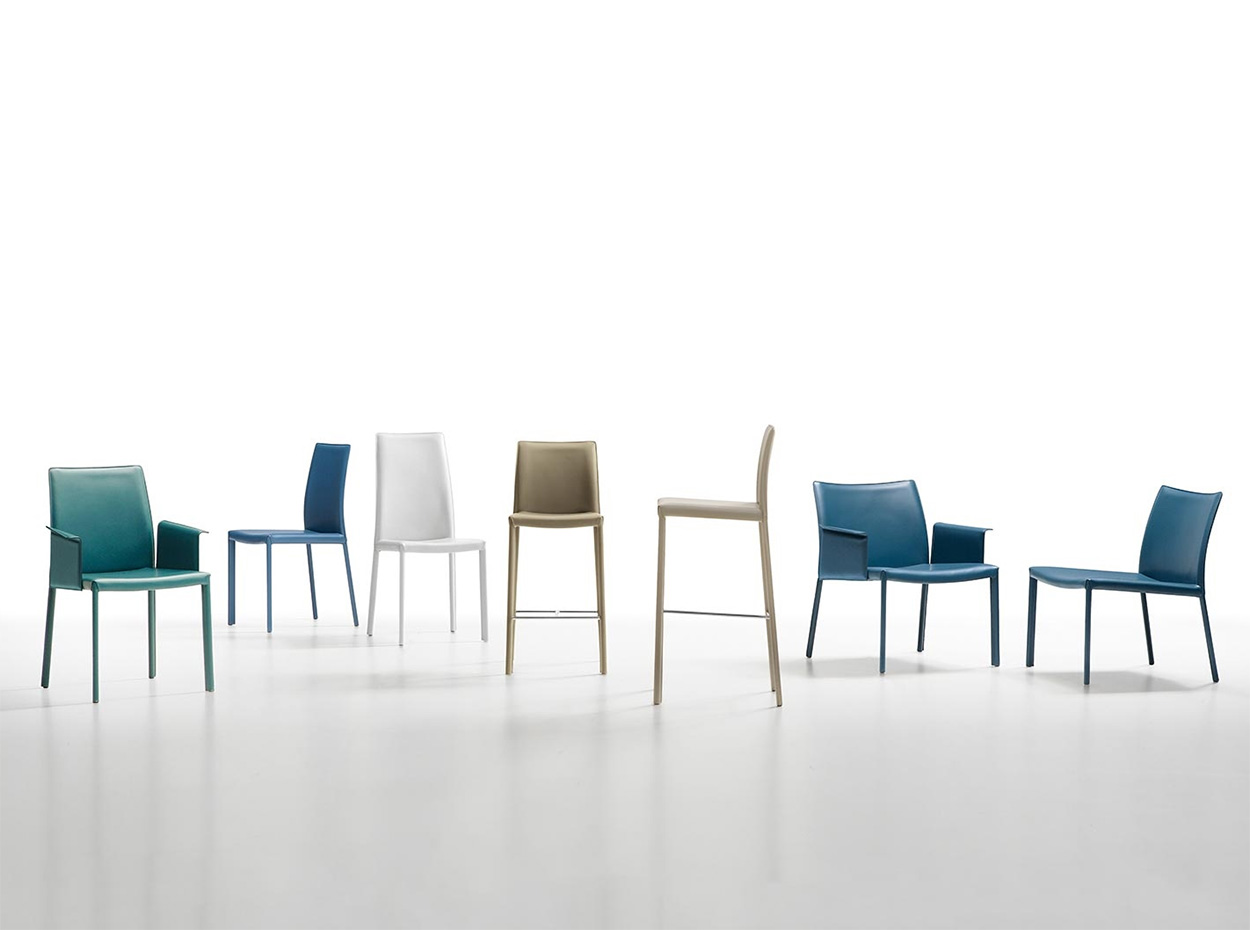 The Nuvola Bar Stool blends contemporary simplicity with tailored comfort, offering a refined seating solution for kitchens and bar areas. Its minimalist design features a fully upholstered seat and backrest, available in fabric, leather, or eco-leather, with the option to choose contrasting finishes for added visual interest.