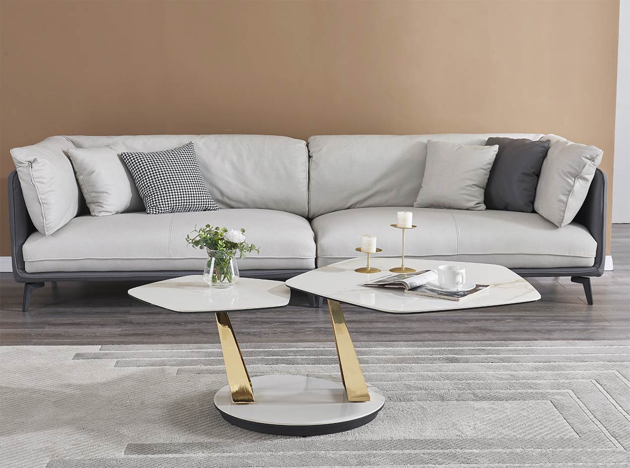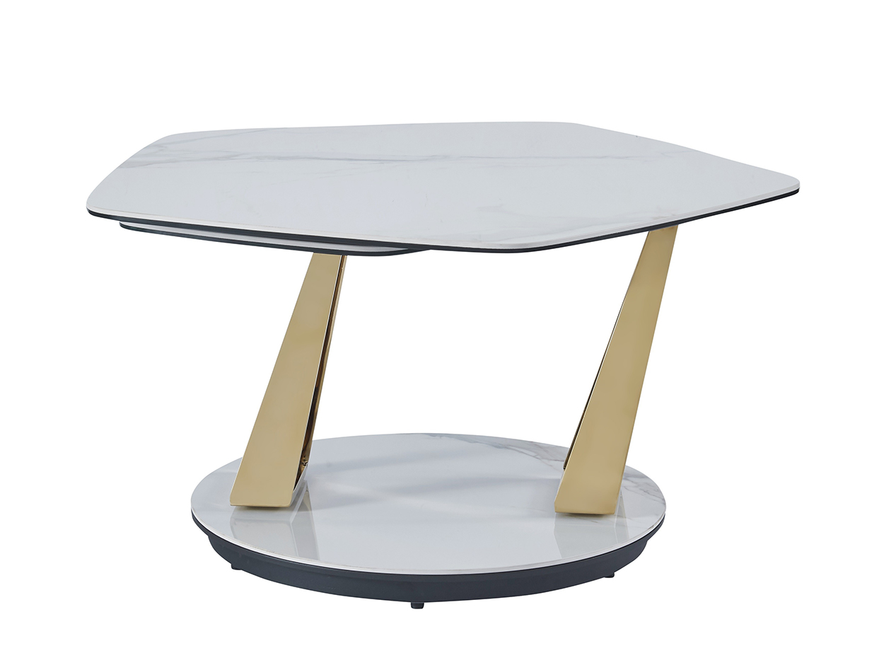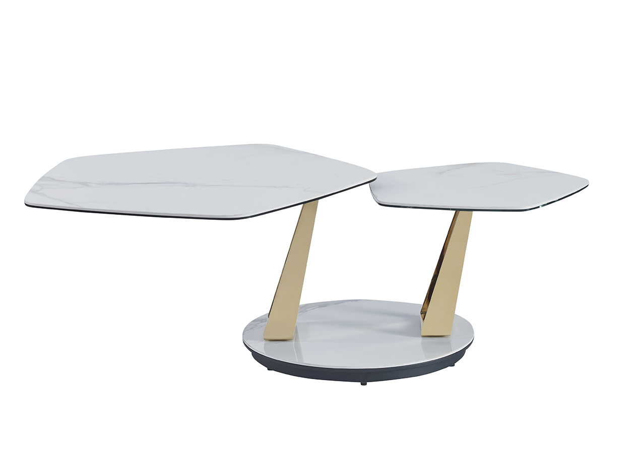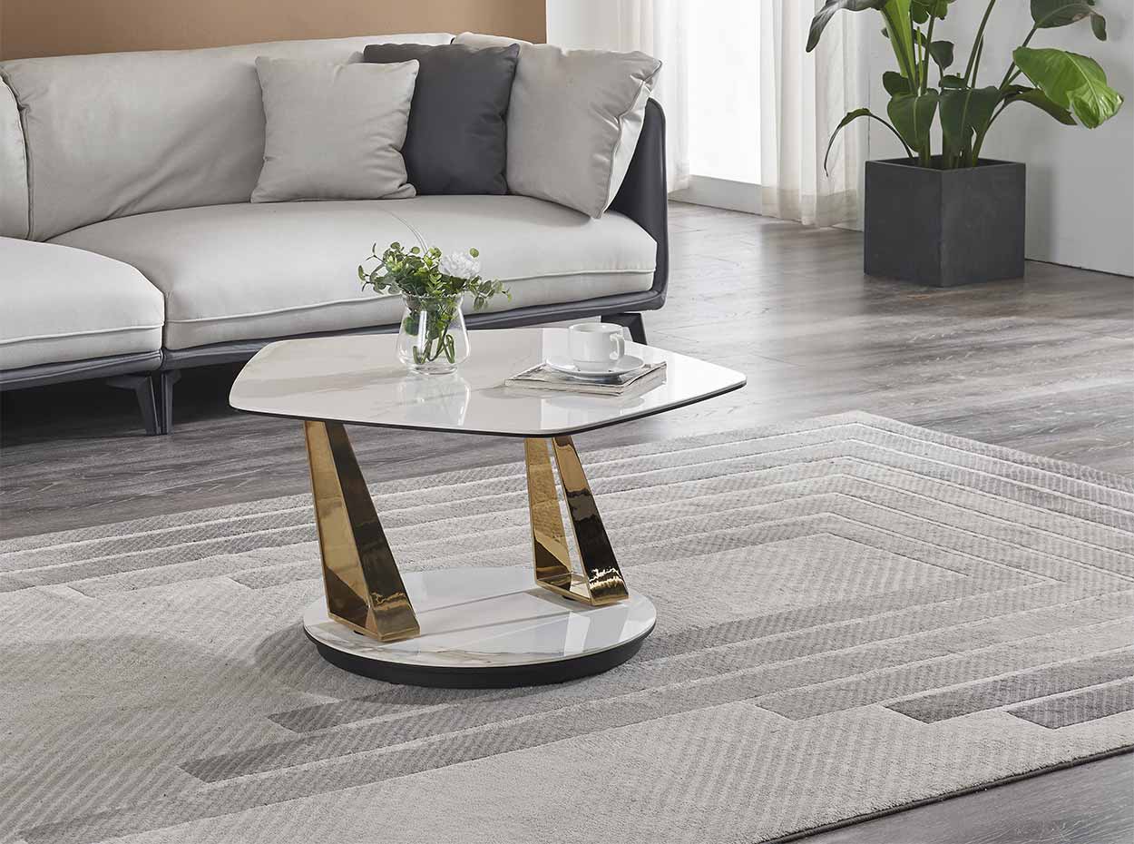 The Orleans Coffee Table is a true showstopper, designed to captivate with its luxurious aesthetic and innovative functionality. Featuring a glossy white ceramic top with striking brown veins, this table exudes elegance while seamlessly complementing modern interiors. Its polished brass base adds a touch of opulence, elevating the overall design. The coffee table also boasts a unique rotary mechanism, allowing a second shelf to unfurl from underneath, providing both style and practicality.