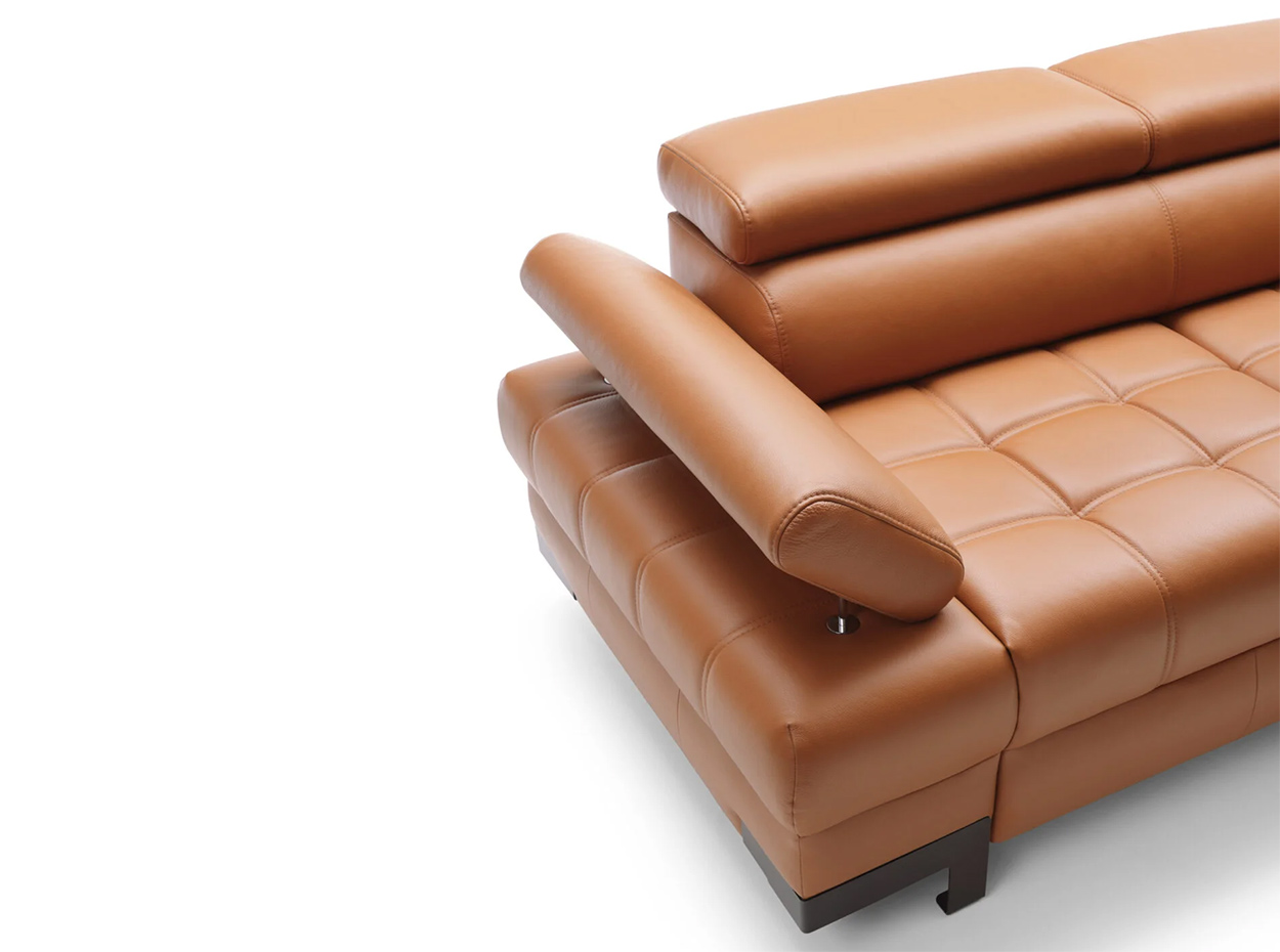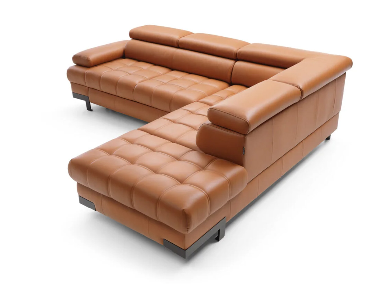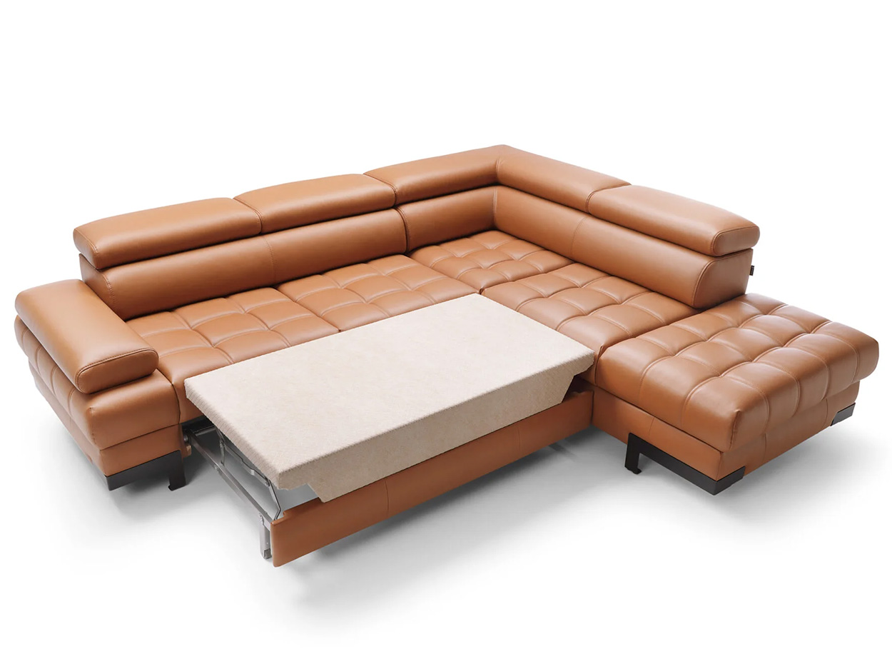 The Leather Selva L Sleeper Sofa seamlessly combines European craftsmanship with modern functionality. Designed to fit perfectly in a corner, it maximizes space while offering a stylish and practical seating solution. Upholstered in natural leather, it features a functional sleeping area and built-in storage for added convenience. Adjustable backrests and headrests provide a customizable comfort experience, ensuring optimal relaxation. Available in a variety of materials and colors, the Selva L can be tailored to complement any interior, making it a sophisticated and versatile addition to your living space.