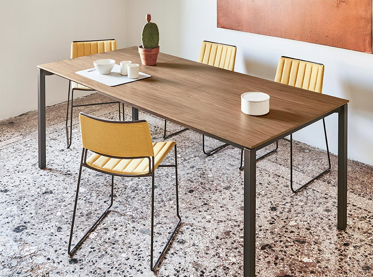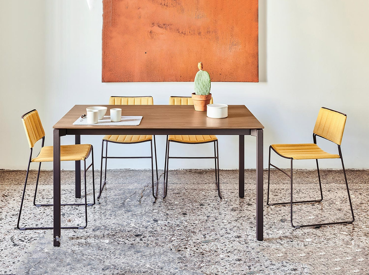 The chair features a durable frame available in a variety of metal finishes, while the seat and backrest are offered in fabric, leather, or eco-leather upholstery. With its tailored options and subtle elegance, the Slim Dining Chair delivers both style and functionality in equal measure.